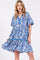 Details A printed dress with a split v-neckline, front button accents, short puff sleeves, a gathered bottom tier with piping accent. Content + Care