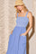 Blue Smocked Embroidered Bust Textured Midi Dress