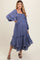 Blue Smocked Ruffle Long Sleeve Maternity Midi Dress