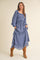 Blue Smocked Ruffle Long Sleeve Midi Dress