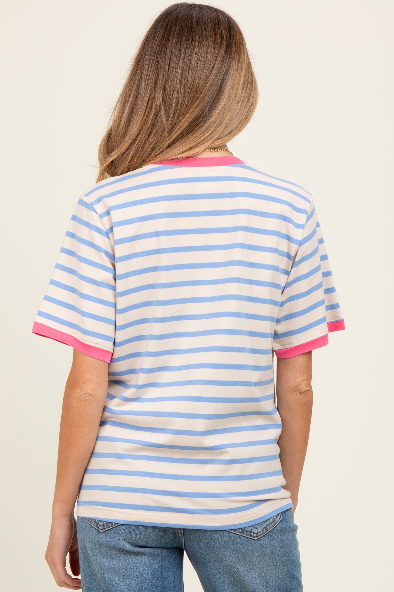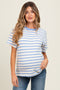 Blue Striped Contrast Trim Short Sleeve Maternity Tee