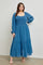 Blue Textured Stripe Smocked Square Neck Plus Midi Dress