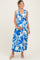 Blue Tropical Print Front Tie Sleeveless Button Up Maternity Dress