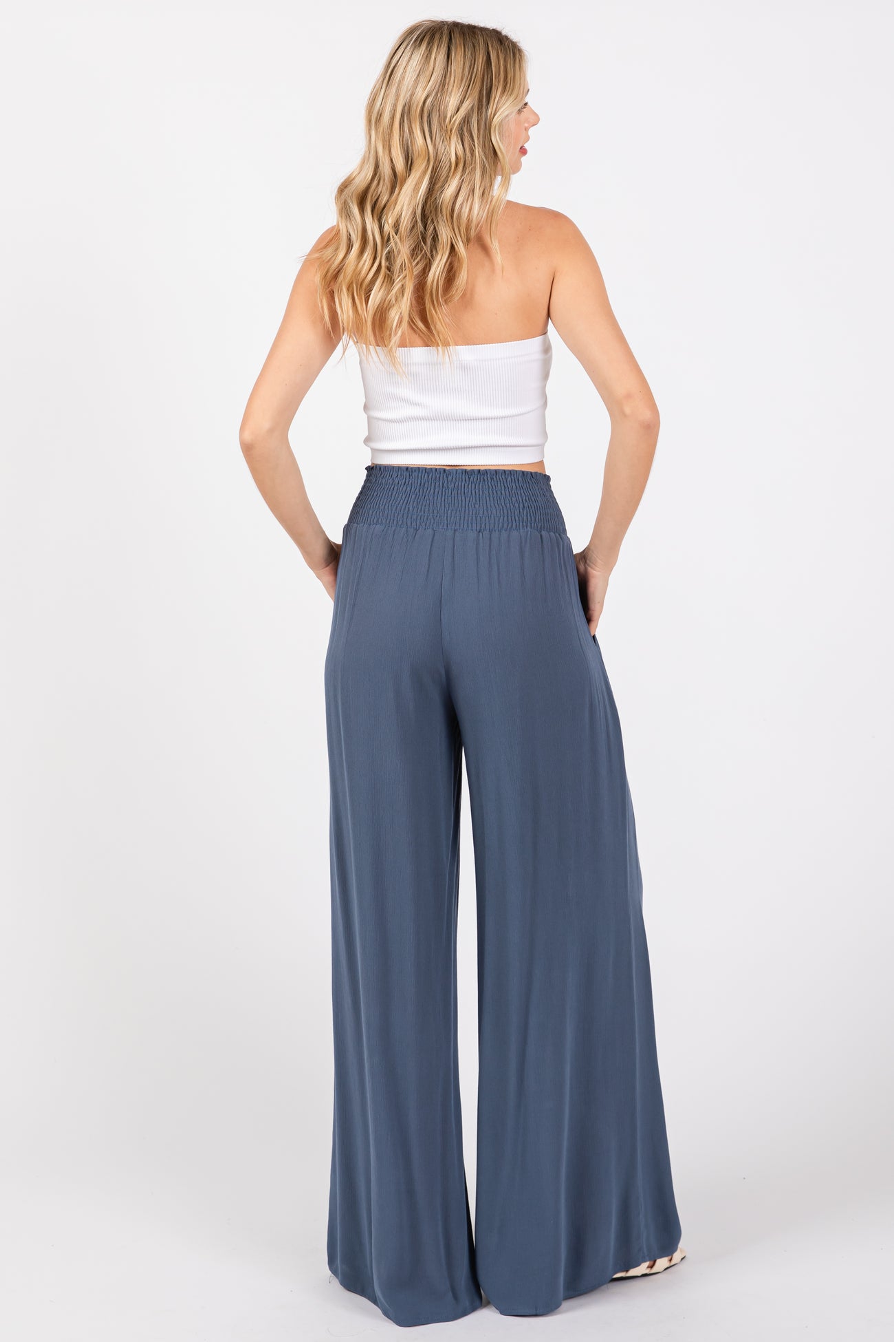 Blue Wide Smock Waist Pants