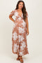 Embrace effortless elegance with our Brown Floral Embroidered Tiered Midi Dress. Crafted from lightweight, breathable fabric, this dress features delicate white floral embroidery on a rich brown backdrop, adding a touch of vintage charm. The tiered midi length and puff sleeves create a flattering silhouette perfect for any occasion, from brunch dates to garden parties. Designed with a subtle scoop neckline and a flowy skirt, it offers comfort and style in one beautiful piece. Pair it with sandals or heels to complete your look. Available in multiple sizes.