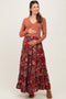 Brown Printed Smocked Wide Leg Maternity Jumpsuit