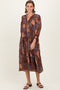 Brown Textured Square Neck Puff Sleeve Midi Dress