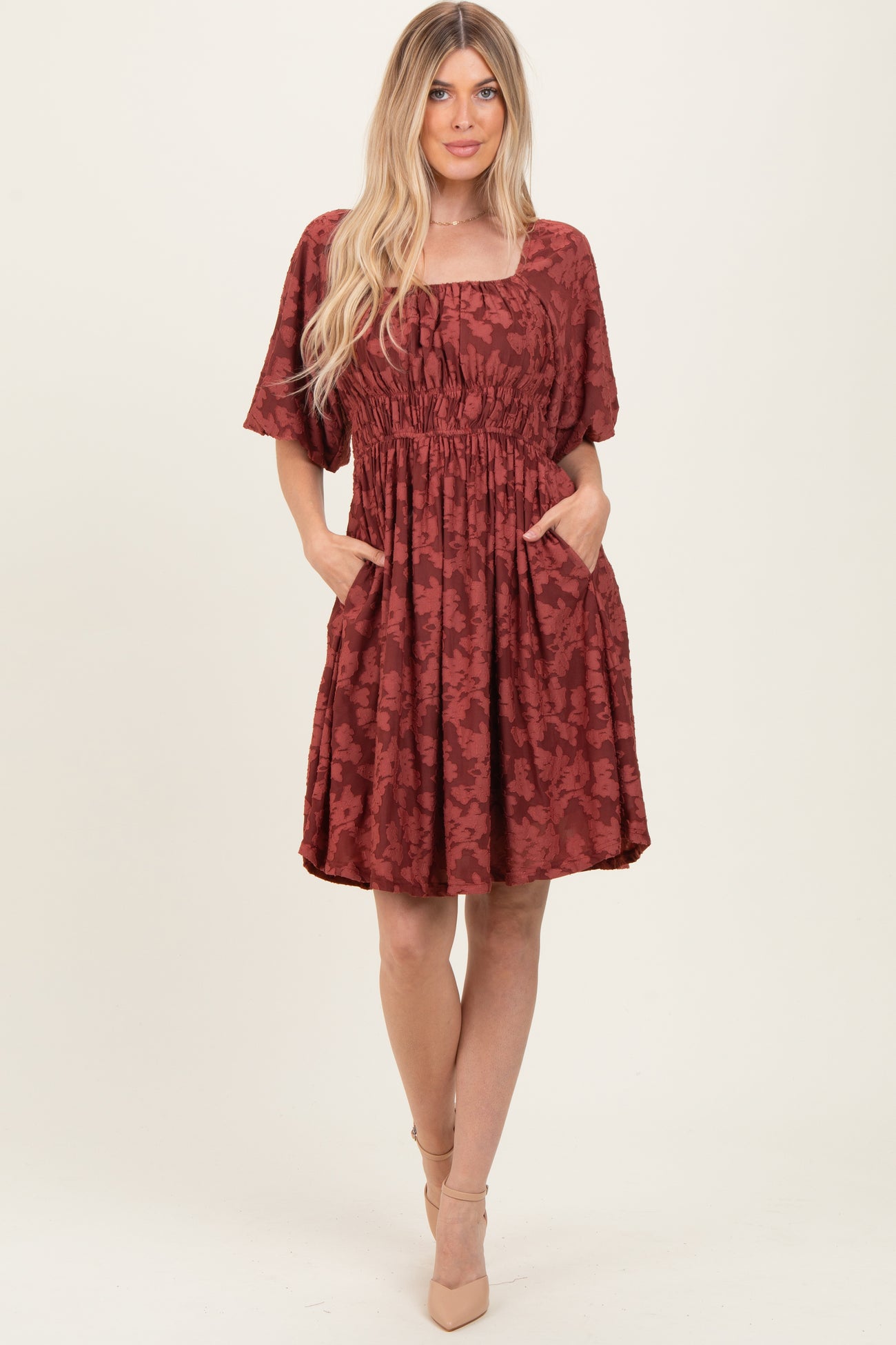 Embrace effortless elegance with our Burgundy Floral Square Neck Dress. Featuring a flattering square neckline and delicate floral pattern, this dress offers a perfect blend of comfort and style. The gathered waist highlights your silhouette, while the flowing skirt and relaxed elbow-length sleeves provide a breezy, feminine touch. Crafted from soft, breathable fabric, it’s ideal for daytime outings or evening gatherings. Pair it with heels or sandals for a versatile look that transitions seamlessly from casual to chic. Elevate your wardrobe with this timeless floral dress!