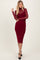 Burgundy Mesh Overlay Fitted Midi Dress