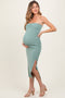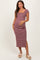 Burgundy Striped Short Sleeve Side Slit Maternity Maxi Dress