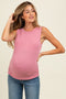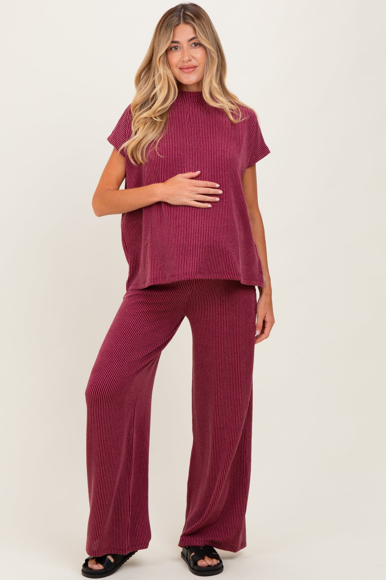 Burgundy Textured Rib Mock Neck Short Sleeve Pant Maternity Set