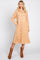Details A stretchy knit corduroy midi dress featuring a collared neckline, a button down front and long sleeves. Content + Care