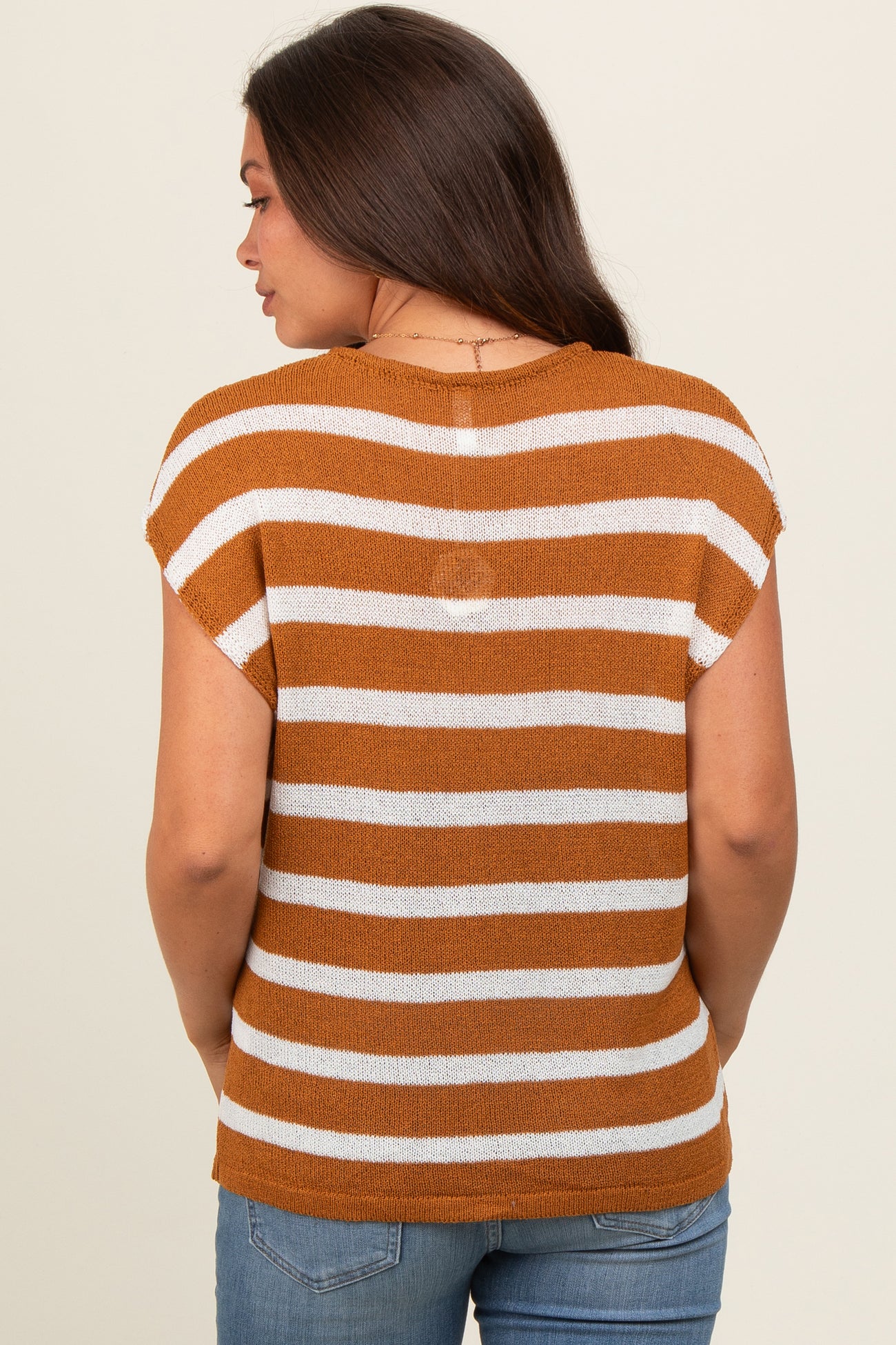 Camel Striped Dolman Short Sleeve Maternity Top