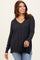 Charcoal Front Seam V-Neck Side Slit Sweater