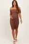 Coral Knit Square Neck Fitted Maternity Midi Dress