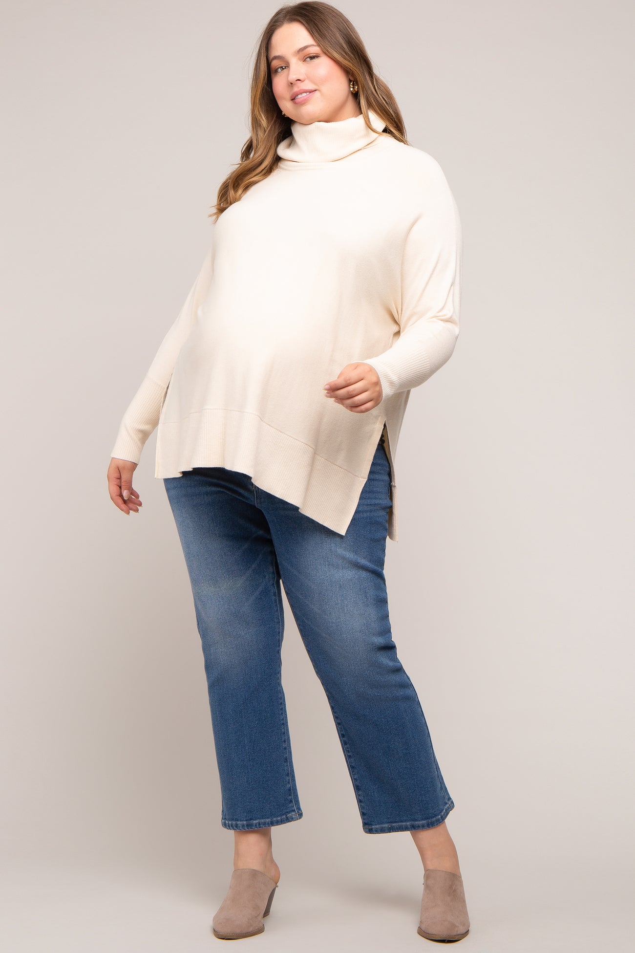 Cream Cowl Neck Dolman Sleeve Maternity Plus Sweater