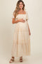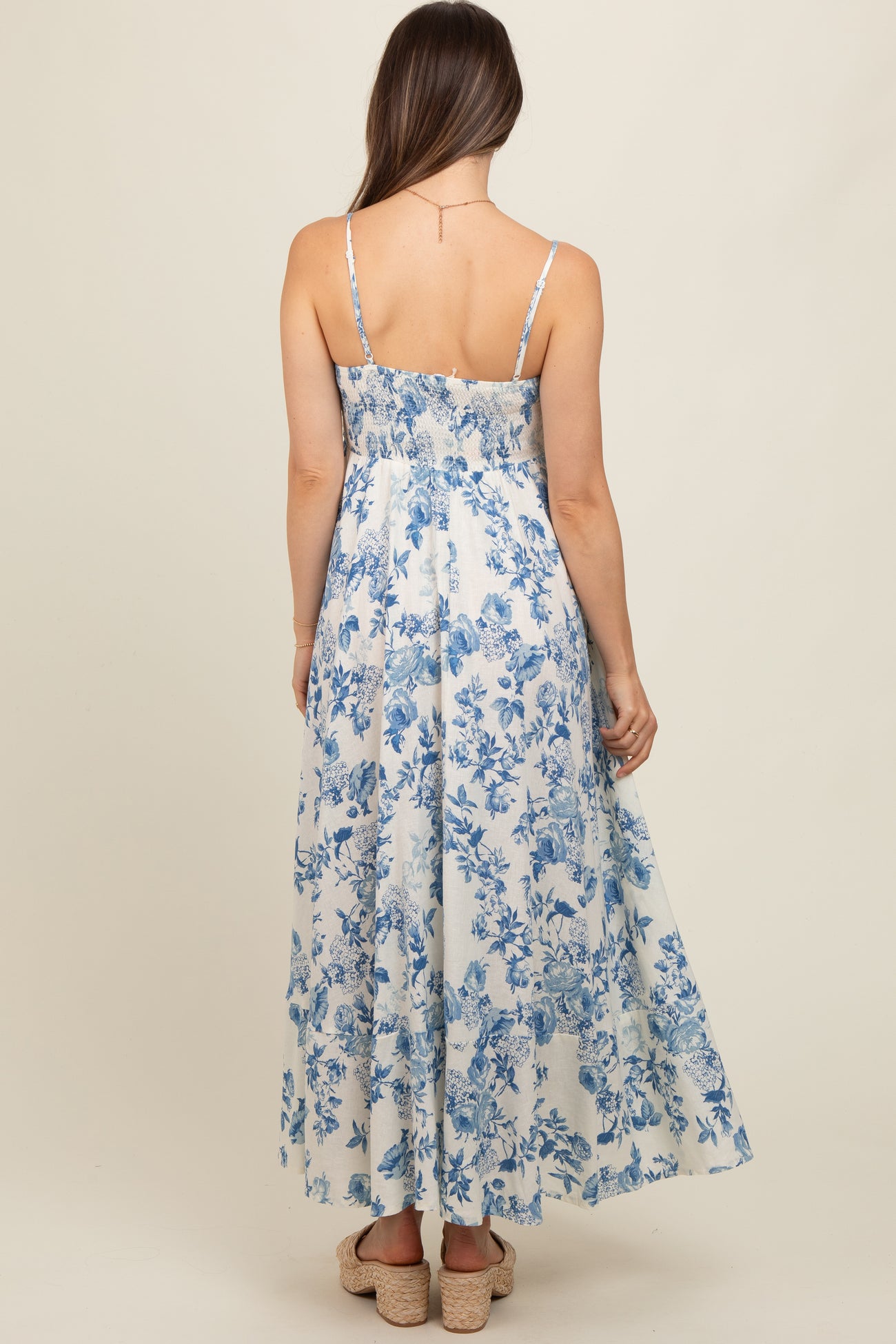 Cream Floral Flowy Sleeveless Squared Neckline Maternity Dress