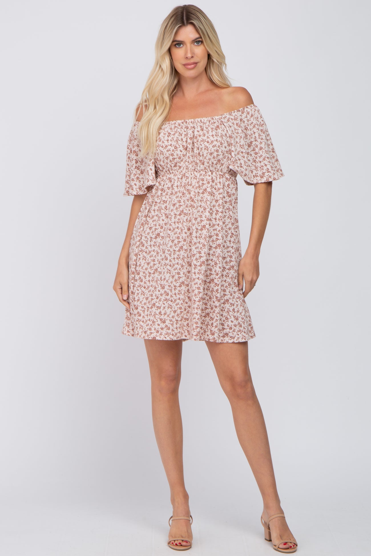Cream Floral Short Sleeve Dress