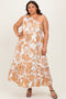 Cream Floral Smocked Short Sleeve Plus Midi Dress