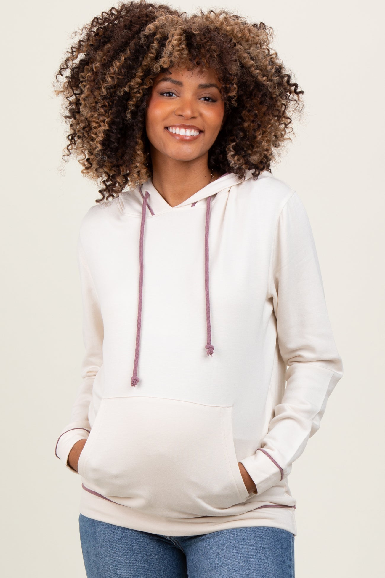 Cream Mauve Contrast Drawstring Maternity Hoodie