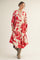 Elevate your wardrobe with this stunning Cream/Red Big Floral Print Midi Dress. Featuring a bold red floral pattern against a soft cream background, this dress effortlessly blends elegance with a vibrant, modern touch. The midi length and tiered skirt provide a flattering silhouette, while the long sleeves with buttoned cuffs add a refined finish. A delicate V-neckline with embroidered detailing enhances the feminine charm of this piece. Perfect for casual outings, garden parties, or a chic weekend look. Pair with boots or sandals to complete your stylish ensemble. Comfortable, breathable fabric ensures all-day wearability.