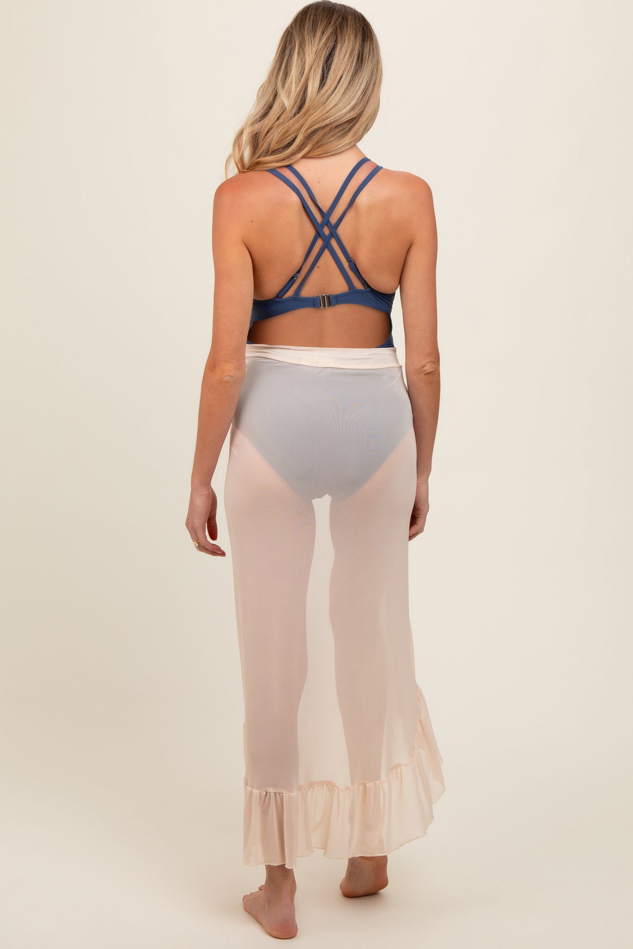 Cream Sheer Ruffle Accent Maternity Cover Up