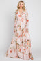 Cream Smocked Flutter Sleeve Tiered Midi Dress