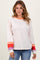 Cream Waffle Knit Colorblock Long Sleeve Top