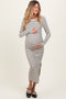 Dark Blue Waffle Knit Rounded Hem Maternity Sweater