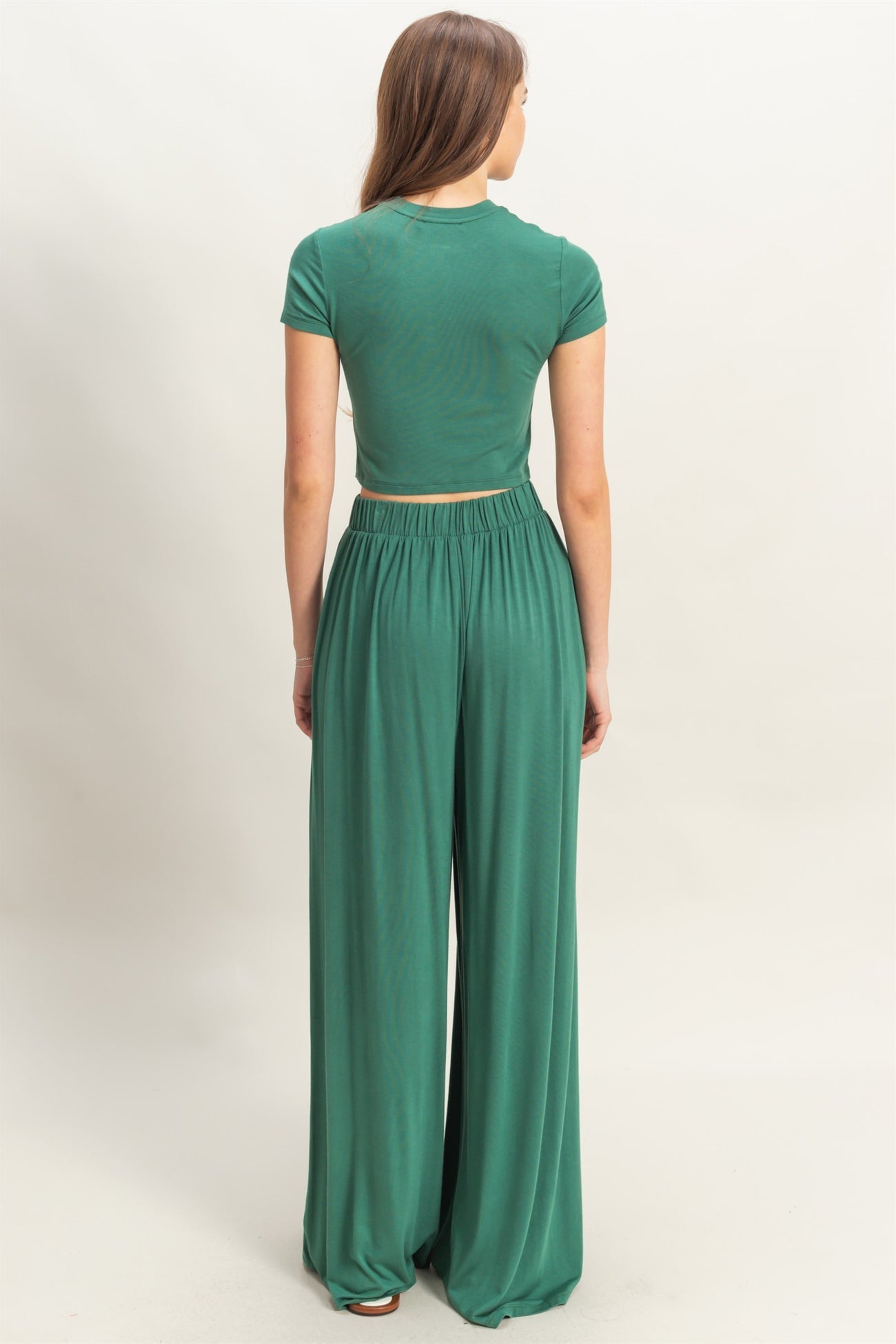 Emerald Green Cropped Short Sleeve Wide Leg Pants Set