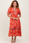 Forest Green Floral Mesh Ruched Sleeveless Midi Dress