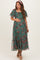 Forest Green Rose Print Tulle Overlay Maternity Midi Dress