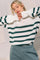 A striped knit, oversized sweater featuring a crew neckline, long sleeves and side slits.