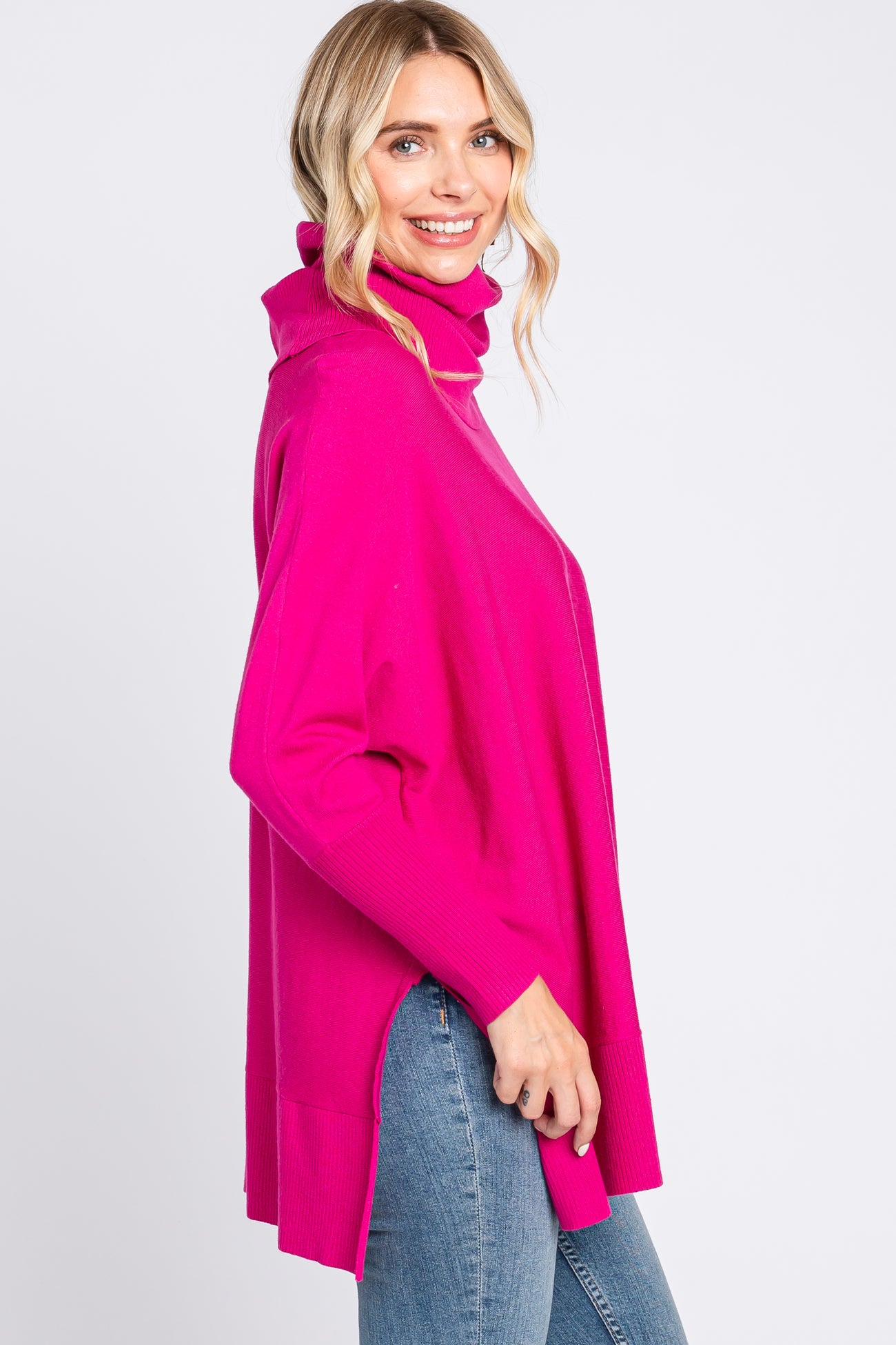 Fuchsia Cowl Neck Dolman Sleeve Sweater