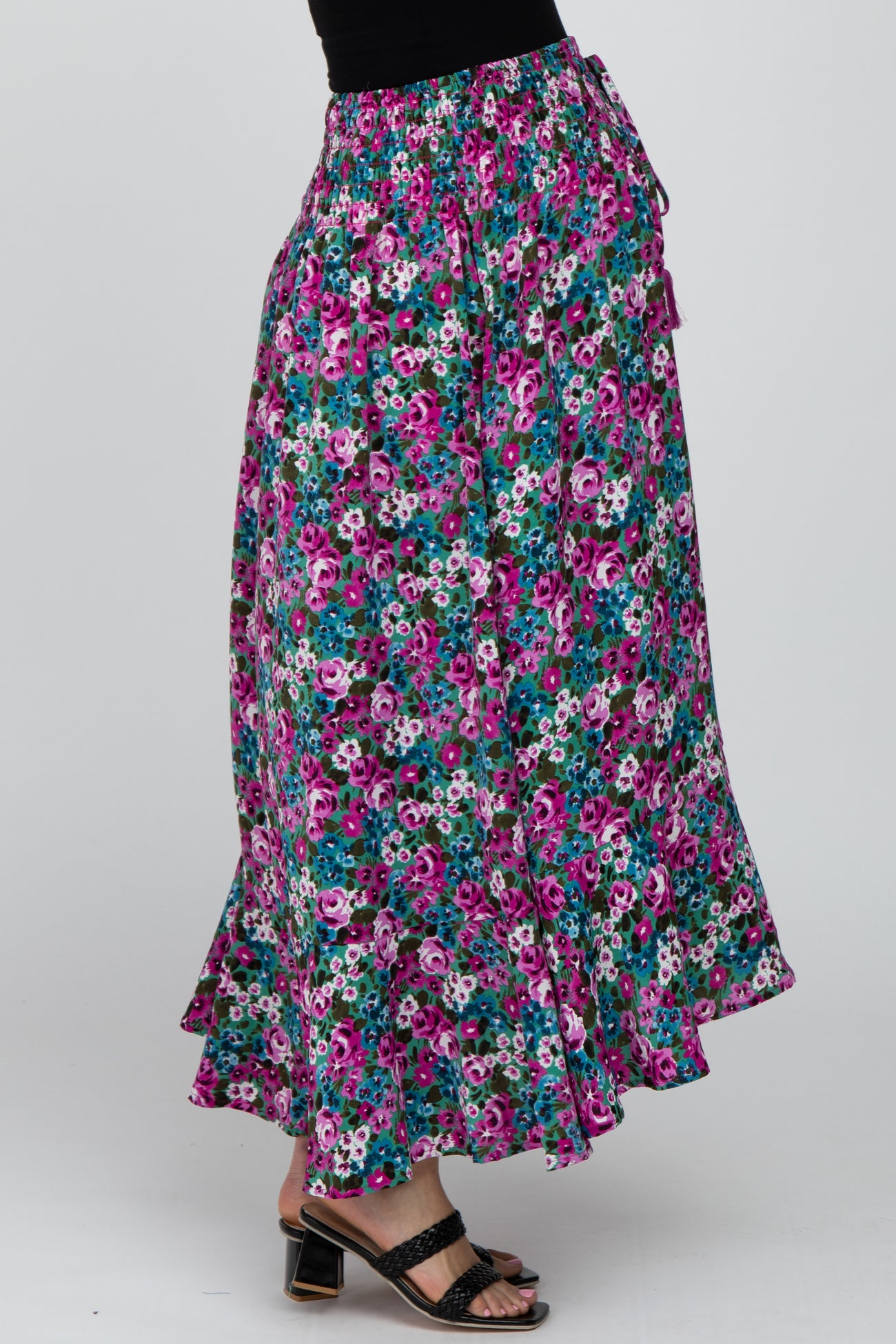 Fuchsia Floral Hi-Low Button Front Maternity Skirt