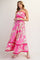 Fuchsia Floral Wavy Trim Maxi Dress