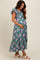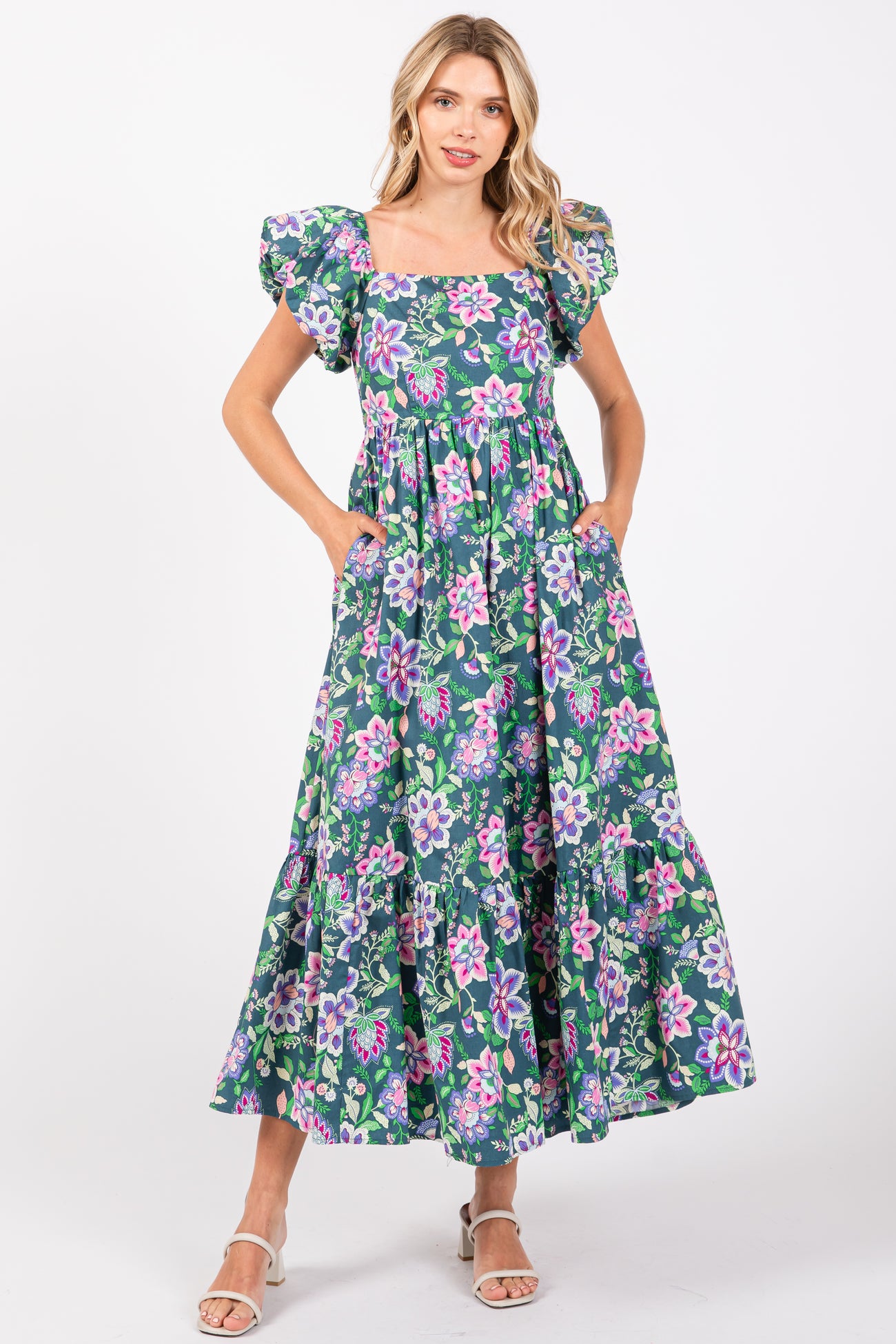 Green Floral Square Neck Puffy Sleeves Maternity Dress