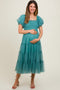 Green Smocked Halter Maternity Maxi Dress