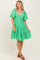Green Smocked V-Neck Ruffle Short Sleeve Tiered Dress