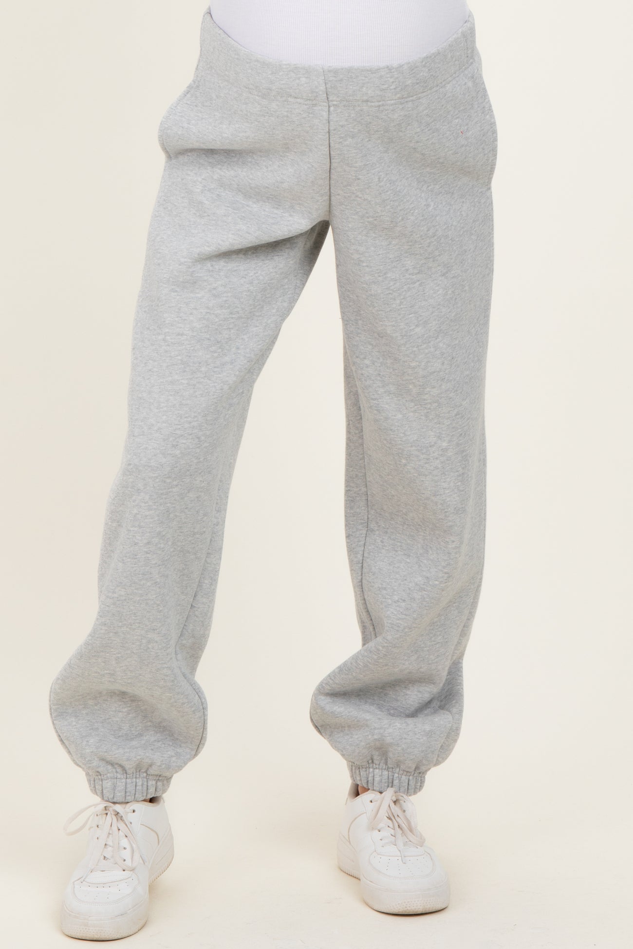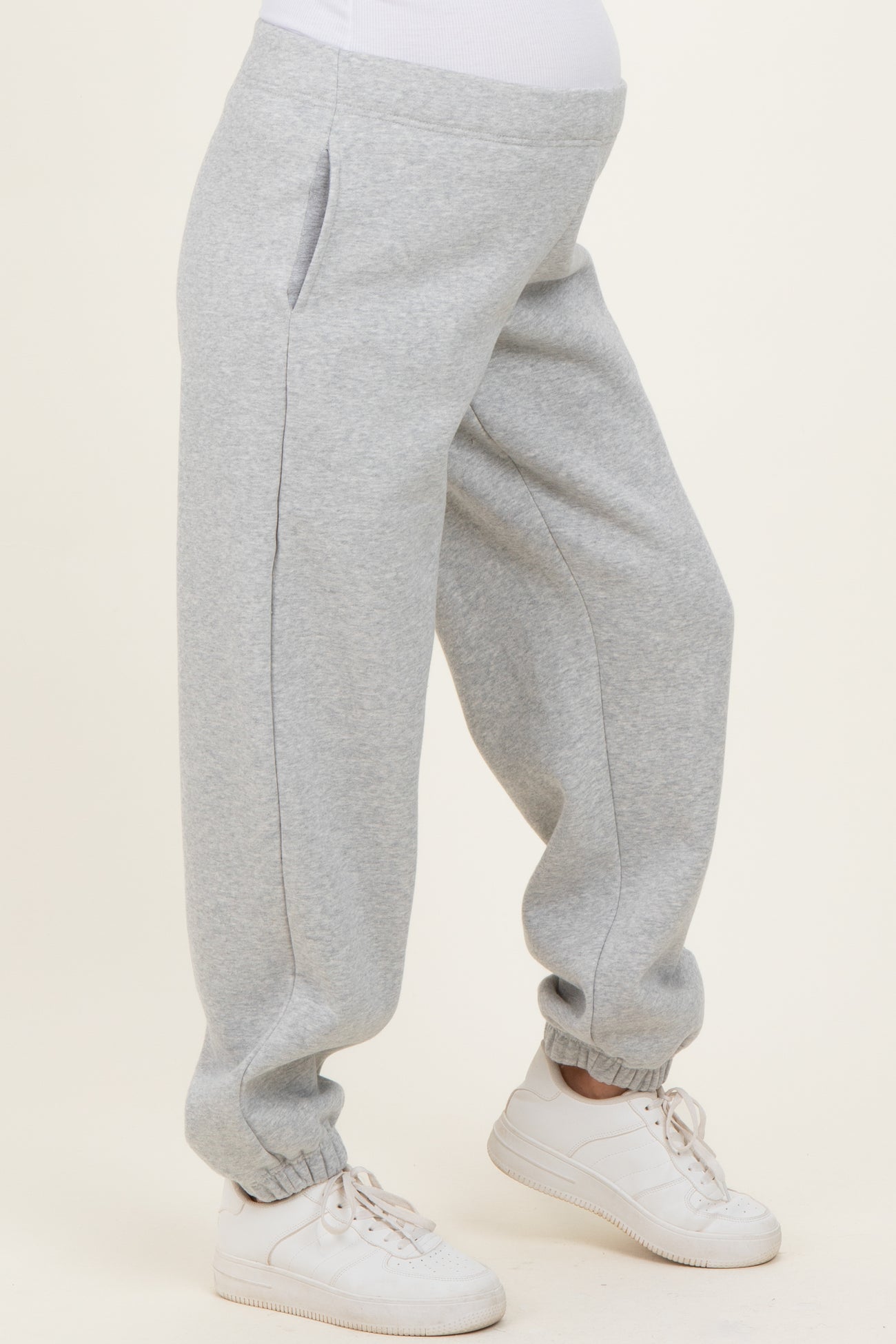 Experience ultimate comfort with our Heather Grey Fleece Maternity Sweatpants, designed specifically to support your growing bump. Made from ultra-soft, cozy fleece fabric, these sweatpants provide warmth and breathability throughout your pregnancy. The elastic waistband stretches gently over your belly, ensuring a perfect fit without pressure. Featuring a relaxed fit and cuffed ankles, they offer both style and ease of movement for everyday wear or lounging. Pair with your favorite tops for a casual, chic maternity look you'll love. Perfect for all trimesters and beyond!