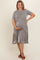 A solid ribbed short sleeve maternity plus dress with scoop neckline and tiered body.
