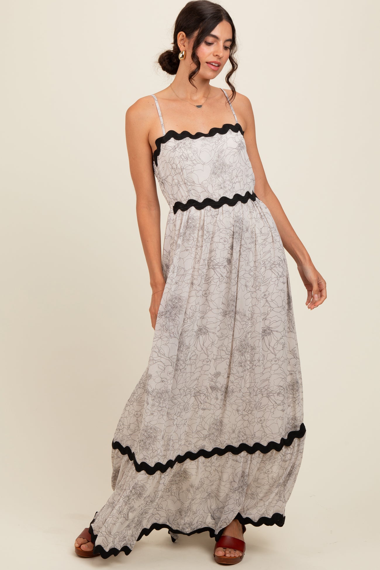 Elevate your wardrobe with this Ivory Floral Contrast Trim Maxi Dress, a perfect blend of elegance and effortless style. Crafted from lightweight fabric, it features a delicate floral print in soft ivory hues, beautifully accented with bold black contrast trim along the neckline, waist, and hem. The spaghetti straps and flowing silhouette offer a flattering fit that moves gracefully with you. Ideal for warm-weather occasions, this maxi dress pairs perfectly with sandals or heels for a chic, feminine look. Embrace timeless sophistication and comfort with this must-have addition to your collection.
