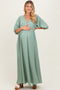Ivory Mauve Floral Knotted Wrap V-Neck Dress