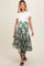 • Blue Floral Smocked Waist Round Hem Midi Skirt