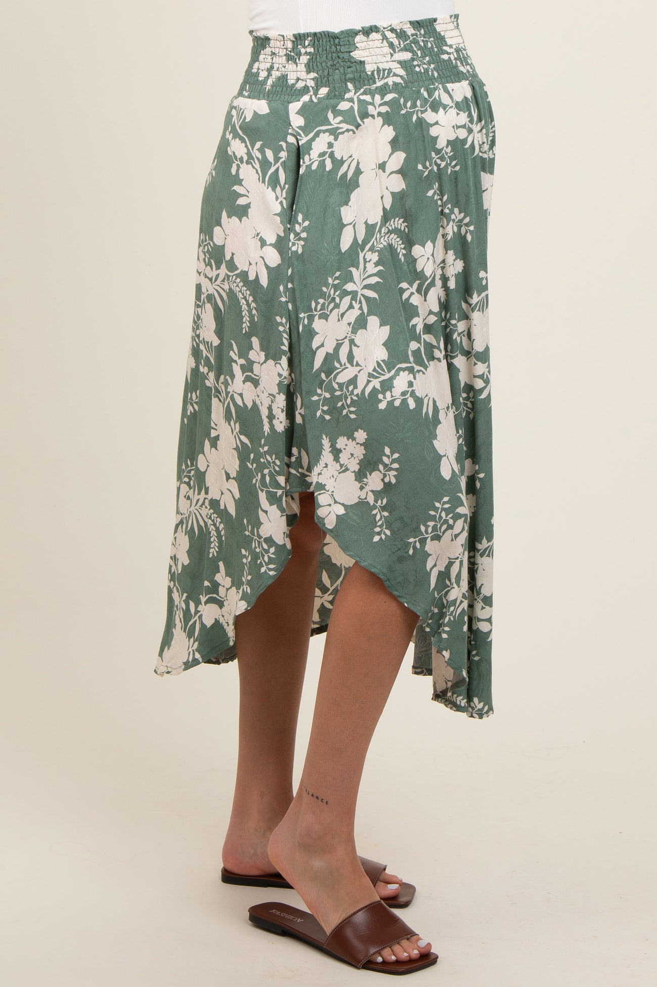 Jade Floral Embroidered Smocked Round Hem Maternity Midi Skirt