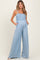 Light Blue Chambray Smocked Maternity Jumpsuit