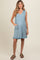 Light Blue Double Pocket Frayed Trim Maternity Dress