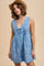Embrace effortless style with our Light Blue Floral Chambray Pleat Front Romper. Crafted from soft, breathable chambray fabric, this romper features delicate floral prints for a fresh, feminine touch. The flattering pleated front adds texture and dimension, while the deep V-neckline with a tie detail brings a hint of playful charm. Sleeveless with a relaxed fit, it’s perfect for warm days or layering with your favorite jacket. Whether for a casual day out or a weekend getaway, this romper combines comfort and chic with ease. Pair it with sandals or sneakers for the ultimate laid-back look.