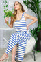 Light Blue Floral Striped Smocked Shoulder Tie Maxi Dress