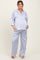 Light Blue Satin Contrast Trim Pajama Pant Maternity Set